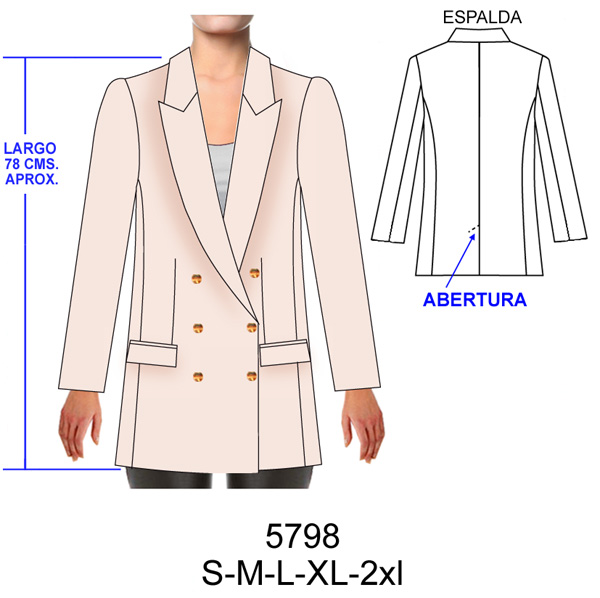 CHAQUETA CRUZADA CUELLO MAO ABIERTO (LARGO 64CMS.)