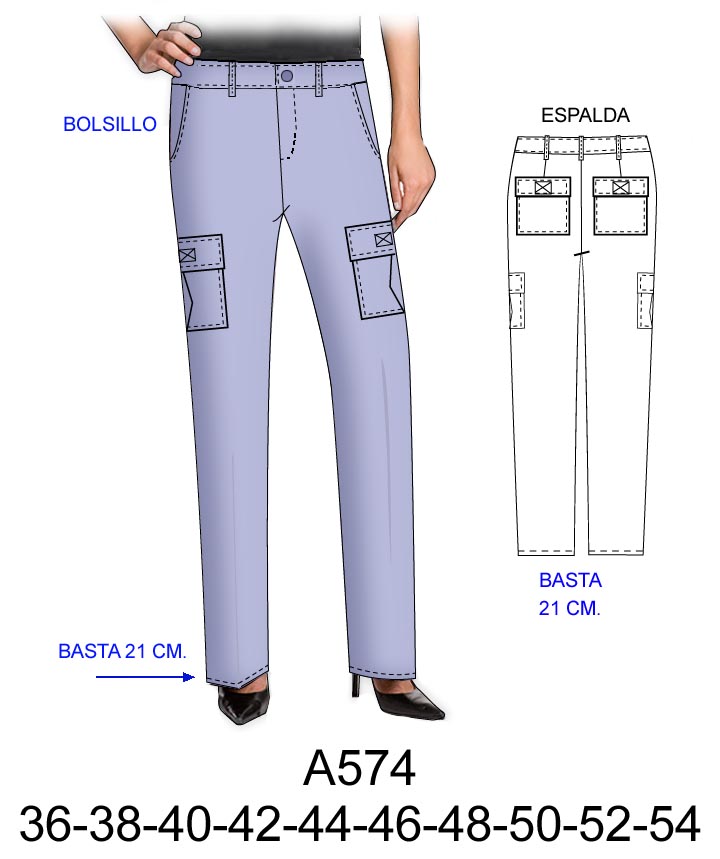 PANTALON CON ALFORZAS CENTRALES BASTA ANCHA, BOLSILLO ARGENTINO