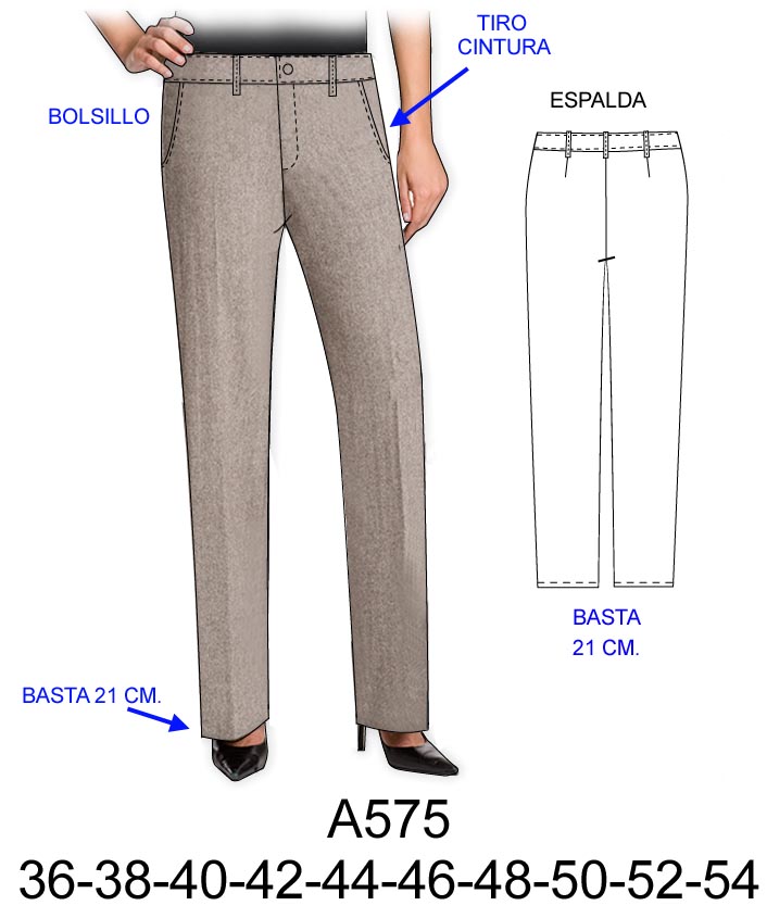 PANTALON CON ELASTICO EN LA CINTURA Y BOLSILLO ARGENTINO, PIERNA RECTA BASTA 24 CM