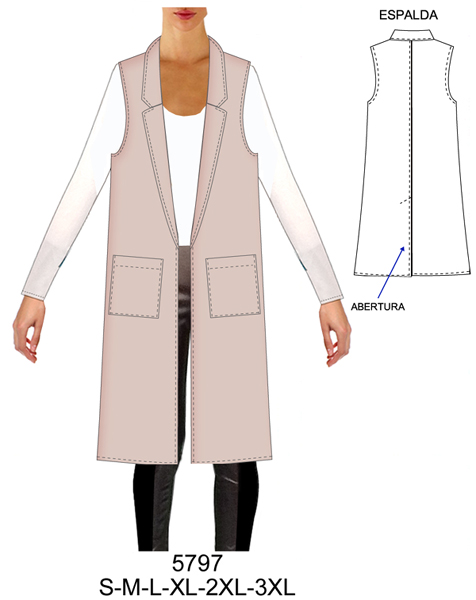 5797 TAPADO RECTO CON SOLAPA SIN FORRO , ABERTURA EN ESPALDA