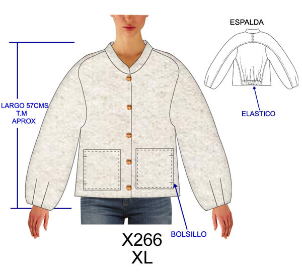 X266 CHAQUETA CUELLO MAO, MANGA BOMBER CON PINZA EN PUÑOS , CALCE HOLGADO